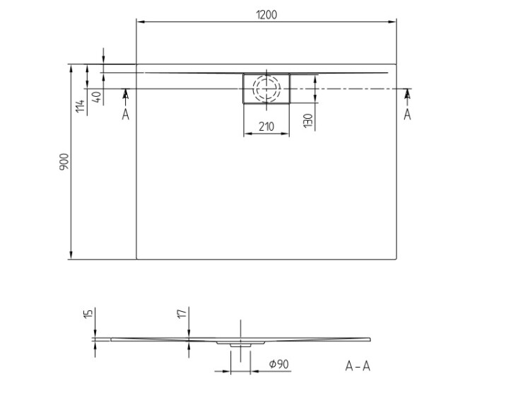 Душевой поддон, Villeroy&Boch, Architectura Metalrim, ширина, мм-1200, глубина, мм-900, высота, мм-17, форма-прямоугольная, сифон-необходимо заказать, диаметр слива, мм-90, материал-акрил, цвет-белый, крышка стока в цвете альпийский белый Душевой поддон, Villeroy&Boch, Architectura Metalrim, шгв 1200*900*17, цвет-белый