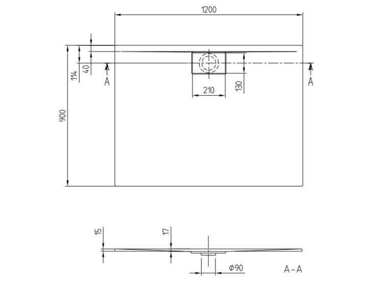 Душевой поддон, Villeroy&Boch, Architectura Metalrim, ширина, мм-1200, глубина, мм-900, высота, мм-17, форма-прямоугольная, сифон-необходимо заказать, диаметр слива, мм-90, материал-акрил, с антислипом VILBOGRIP, цвет-белый, крышка стока в цвете альпийский белый Душевой поддон, Villeroy&Boch, Architectura Metalrim, шгв 1200*900*17, с антислипом VILBOGRIP, цвет-белый