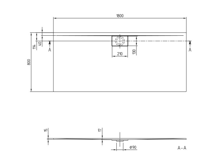 Душевой поддон, Villeroy&Boch, Architectura Metalrim, ширина, мм-1800, глубина, мм-800, высота, мм-17, форма-прямоугольная, сифон-необходимо заказать, диаметр слива, мм-90, материал-акрил, цвет-альпийский белый, rрышка слива в цвете-альпийский белый Душевой поддон, Villeroy&Boch, Architectura Metalrim, шгв 1800*800*17, цвет-альпийский белый
