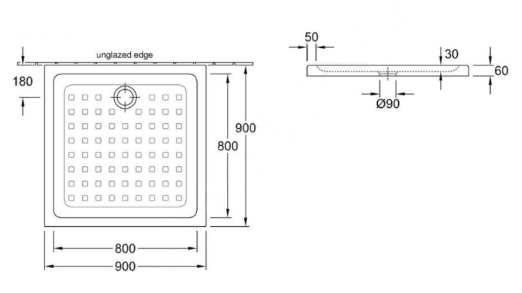 Душевой поддон, Villeroy&Boch, O.Novo, тип установки-напольный, ширина, мм-900, глубина, мм-900, высота, мм-60, форма-квадратная, сифон-необходимо заказать, диаметр слива, мм-90, материал-керамика, цвет-альпийский белый Душевой поддон, Villeroy&Boch, O.Novo, шгв 900*900*60, цвет-альпийский белый