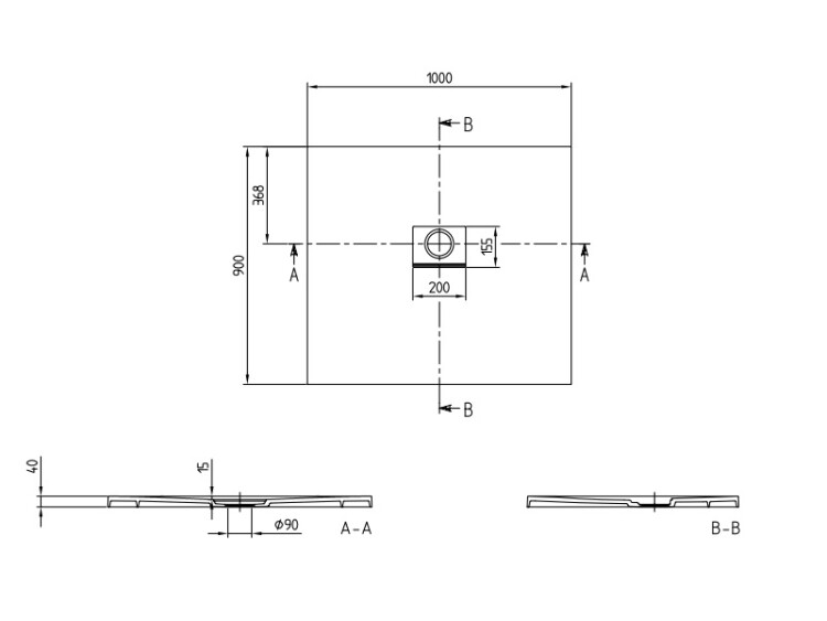 Душевой поддон, Villeroy&Boch, Squaro Infinity, ширина, мм-1000, глубина, мм-900, высота, мм-40, форма-прямоугольная, диаметр слива, мм-90, ножки-необходимо заказать, материал-Quaryl, цвет-камень белый Душевой поддон, Villeroy&Boch, Squaro Infinity, шгв 1000*900*40, цвет-камень белый