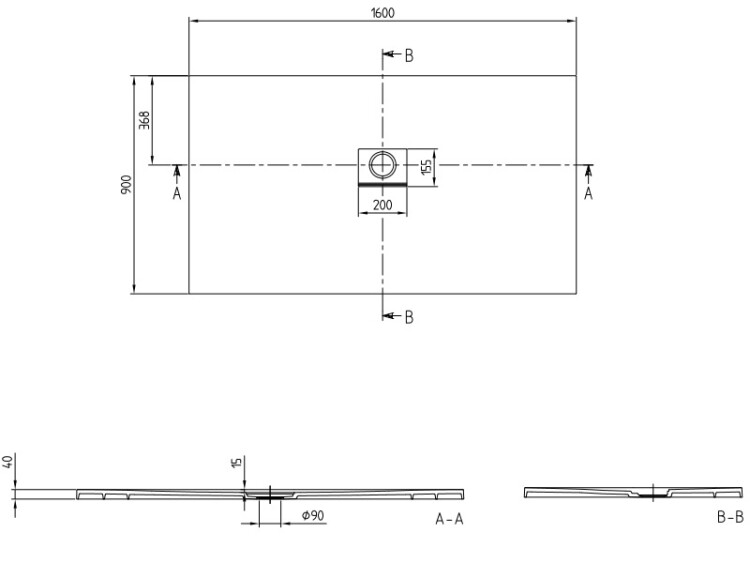 Душевой поддон, Villeroy&Boch, Squaro Infinity, универсальная, ширина, мм-1600, глубина, мм-900, высота, мм-40, форма-прямоугольная, сифон-необходимо заказать, диаметр слива, мм-90, материал-Quaryl, цвет-Stone White, глубина душевого поддона,мм-15, крышка слива в соответствующем матовом цвете с хромированной накладкой Душевой поддон, Villeroy&Boch, Squaro Infinity, шгв 1600*900*40, цвет-Stone White