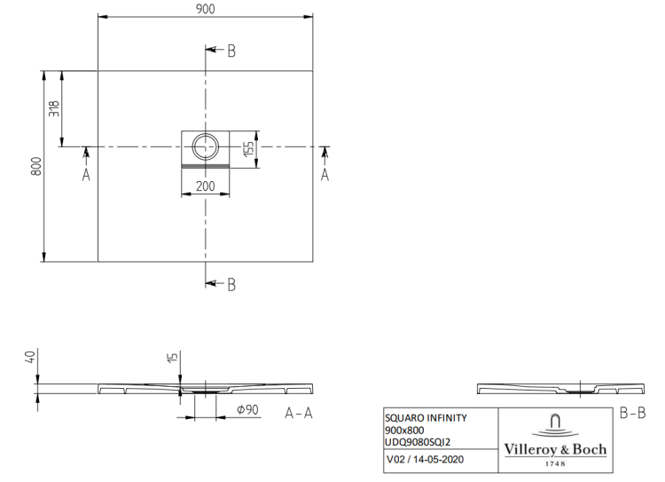 Душевой поддон, Villeroy&Boch, Squaro Infinity, тип установки-встраиваемый/напольный, ширина, мм-900, глубина, мм-800, высота, мм-40, форма-прямоугольная, сифон-необходимо заказать, диаметр слива, мм-90, материал-Quaryl, в комплекте-заглушка для сливного отверстия матового цвета с хромированной полосой, цвет-камень белый (Stone White) Душевой поддон, Villeroy&Boch, Squaro Infinity, шгв 900*800*40, цвет-камень белый (Stone White)