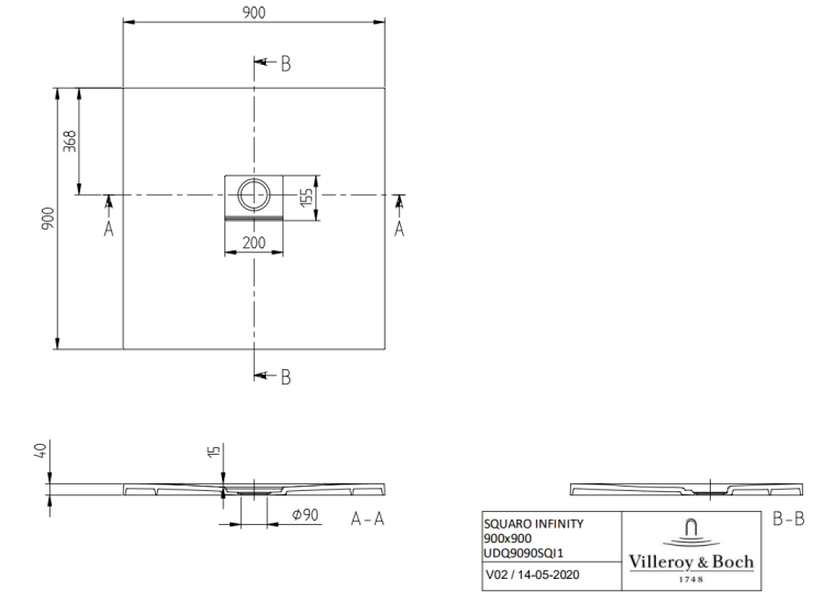 Душевой поддон, Villeroy&Boch, Squaro Infinity, тип установки-встраиваемый/напольный, ширина, мм-900, глубина, мм-900, высота, мм-40, форма-квадратная, сифон-необходимо заказать, диаметр слива, мм-90, материал-Quaryl, в комплекте-заглушка для сливного отверстия матового цвета с хромированной полосой, цвет-Antracite Душевой поддон, Villeroy&Boch, Squaro Infinity, шгв 900*900*40, цвет-Antracite