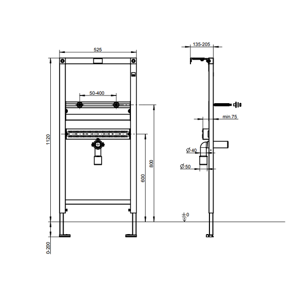 Инсталляция, Villeroy&Boch, ViConnect, назначение-для раковины, ширина, мм-525, глубина, мм-75, высота, мм-1120, материал-сталь, тип установки-к стене, крепёж-есть, ножки-есть Инсталляция для раковины, Villeroy&Boch, ViConnect, шгв 525*75*1120