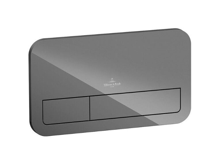 Клавиша смыва, Villeroy&Boch, ViConnect, для скрытого смывного бачка, ширина, мм-269, глубина, мм-13, высота, мм-161, тип смыва-двойной, тип управления-механический, материал-стекло, цвет-серый глянцевый, в комплекте-рамка клавиши, навесная рама и крепежный болт, кнопка смыва со стопорным винтом, управление спереди Клавиша смыва, Villeroy&Boch, ViConnect, для скрытого смывного бачка, шгв 269*13*161, цвет-серый глянцевый