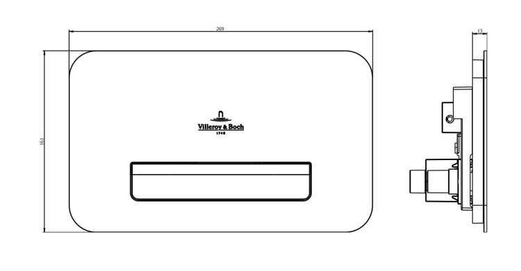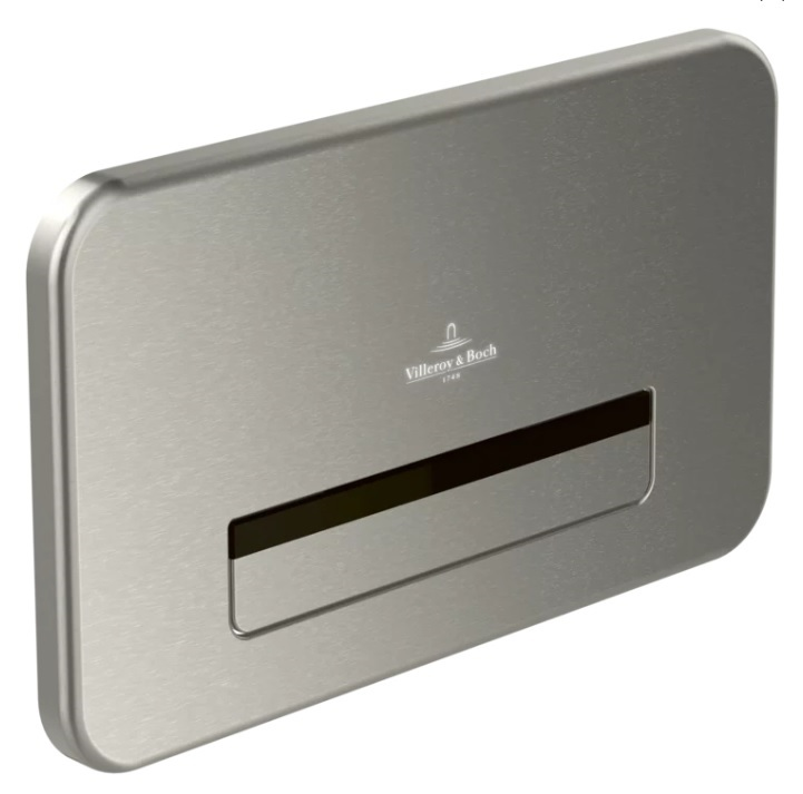 Клавиша смыва, Villeroy&Boch, ViConnect, для унитаза, ширина, мм-269, глубина, мм-13, высота, мм-161, активная инфракрасная сенсорная активация смыва с многозонным сенсором и фиксацией времени, корпус сенсора из поликарбоната, светодиодная подсветка логотипа, с регулировкой цвета и интенсивности, цвет-Stainless steel Клавиша смыва, Villeroy&Boch, ViConnect, для унитаза, шгв 269*13*161, цвет-Stainless steel