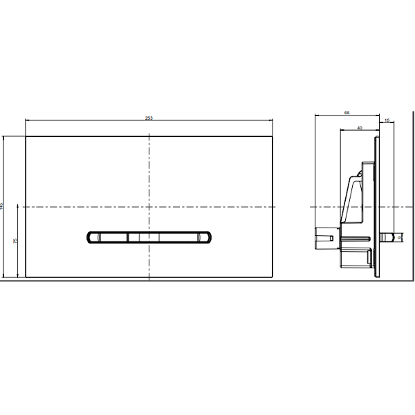 Клавиша смыва, Villeroy&Boch, ViConnect, ширина, мм-253, глубина, мм-20, высота, мм-145, материал-пластик, цвет-Anthracite Matt, цвет кнопок-матовый хром Клавиша смыва, Villeroy&Boch, ViConnect, шгв 253*20*145, цвет-Anthracite Matt