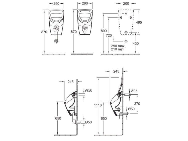 Писсуар, Villeroy&Boch, O'Novo, компактный, тип установки-подвесной, ширина, мм-290, глубина, мм-245, высота, мм-495, подвод воды-скрытый, сифон-необходимо заказать, материал-санфарфор, крепления в комплекте, цвет-альпийский белый, с отверстиями для крепежа крышки Писсуар, Villeroy&Boch, O'Novo, шгв 290*245*495, цвет-альпийский белый