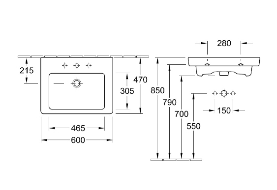 Раковина, Villeroy&Boch, Subway 2.0, ширина, мм-600, глубина, мм-470, тип установки-накладной, отверстия для смесителя-1 сквозное, 2 промаркированных, с переливом, материал-керамика, вид грязеотталкивающего покрытия-CeramicPlus, цвет-альпийский белый Раковина, Villeroy&Boch, Subway 2.0, шг 600*470, отверстия для смесителя-1 сквозное, 2 промаркированных, CeramicPlus, цвет-альпийский белый