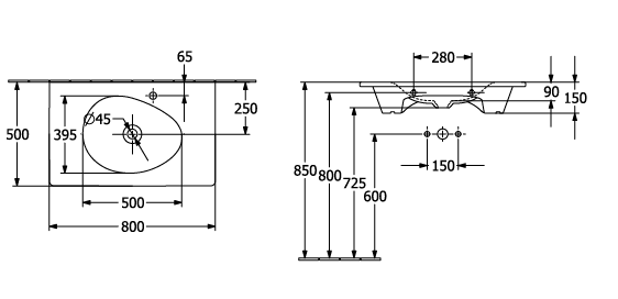Раковина, Villeroy&Boch, Antao, ширина, мм-800, глубина, мм-500, тип установки-встраиваемый, отверстия для смесителя-1, без перелива, материал-TitanCeram, вид грязеотталкивающего покрытия-CeramicPlus, цвет-Almond Раковина, Villeroy&Boch, Antao, шг 800*500, отверстия для смесителя-1, CeramicPlus, цвет-Almond