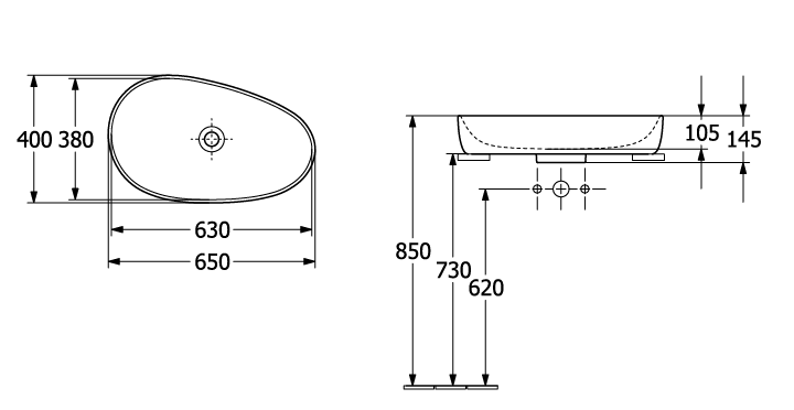 Раковина, Villeroy&Boch, Antao, ширина, мм-650, глубина, мм-400, высота, мм-105, тип установки-накладной (настольный), отверстия для смесителя-отсутствуют, без перелива, материал-керамика, вид грязеотталкивающего покрытия-CeramicPlus, крепления в комплекте, цвет-Pure Black Раковина, Villeroy&Boch, Antao, шгв 650*400*105, отверстия для смесителя-отсутствуют, CeramicPlus, цвет-Pure Black