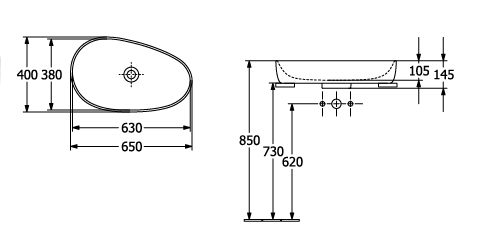 Раковина, Villeroy&Boch, Antao, ширина, мм-650, глубина, мм-400, высота, мм-105, тип установки-накладной (настольный), отверстия для смесителя-отсутствуют, без перелива, материал-керамика, вид грязеотталкивающего покрытия-CeramicPlus, в комплекте-крепления, закрывающийся клапан с керамической крышкой, цвет-Stone White Раковина, Villeroy&Boch, Antao, шгв 650*400*105, отверстия для смесителя-отсутствуют, CeramicPlus, цвет-Stone White