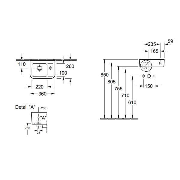 Раковина, Villeroy&Boch, Architectura, ширина, мм-360, глубина, мм-260, тип установки-подвесной, отверстия для смесителя-одно, декор-без декора, материал-керамика, цвет-альпийский белый Раковина, Villeroy&Boch, Architectura, шг 360*260, цвет-альпийский белый