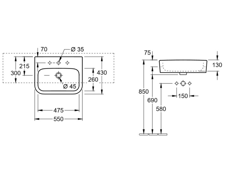 Раковина, Villeroy&Boch, Architectura, ширина, мм-550, глубина, мм-430, тип установки-полувстраиваемый, отверстия для смесителя-1, материал-санфарфор, цвет-альпийский белый Раковина, Villeroy&Boch, Architectura, шг 550*430, отверстия для смесителя-1, цвет-альпийский белый