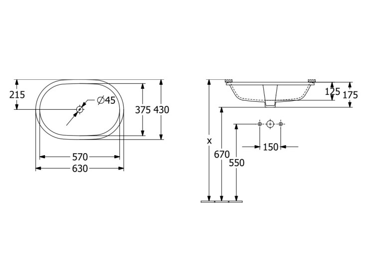 Раковина, Villeroy&Boch, Architectura, ширина, мм-570, глубина, мм-375, высота, мм-175, тип установки-встраиваемый, отверстия для смесителя-отсутствуют, с переливом, материал-керамика, цвет-белый Раковина, Villeroy&Boch, Architectura, шгв 570*375*175, отверстия для смесителя-отсутствуют, цвет-белый