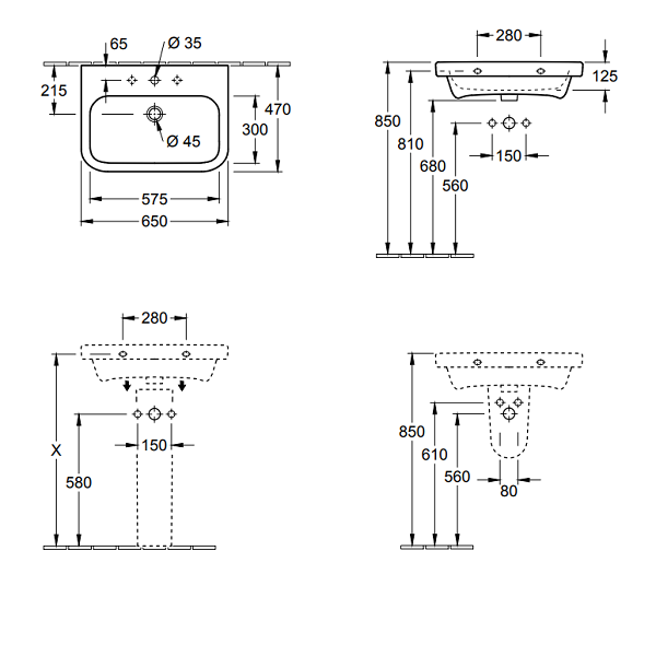 Раковина, Villeroy&Boch, Architectura, ширина, мм-650, глубина, мм-470, высота, мм-160, отверстия для смесителя-одно, декор-без декора, цвет-альпийский белый Раковина, Villeroy&Boch, Architectura, шгв 650*470*160, цвет-альпийский белый