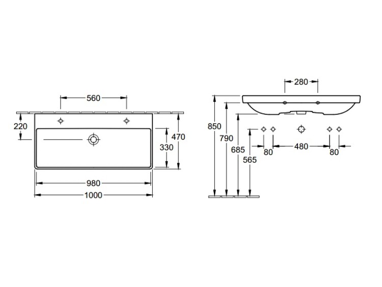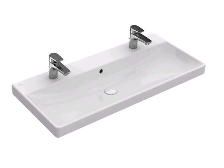 Раковина, Villeroy&Boch, Avento, ширина, мм-1000, глубина, мм-470, тип установки-на тумбу, отверстия для смесителя-два, перелив-есть, грязеотталкивающее покрытие-CeramicPlus, цвет-альпийский белый Раковина, Villeroy&Boch, Avento, шг 1000*470, CeramicPlus, цвет-альпийский белый
