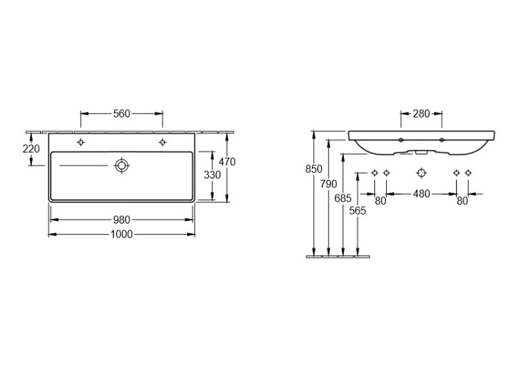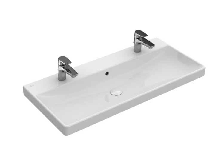 Раковина, Villeroy&Boch, Avento, ширина, мм-1000, глубина, мм-470, тип установки-на тумбу, отверстия для смесителя-2, перелив-есть, тип перелива-открытый, материал-санфарфор, цвет-альпийский белый Раковина, Villeroy&Boch, Avento, шг 1000*470, отверстия для смесителя-2, цвет-альпийский белый