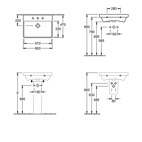 Раковина, Villeroy&Boch, Avento, ширина, мм-600, глубина, мм-470, отверстия для смесителя-одно, перелив-есть, декор-без декора, материал-керамика, крепёж-есть, цвет-альпийский белый Раковина, Villeroy&Boch, Avento, шг 600*470, цвет-альпийский белый