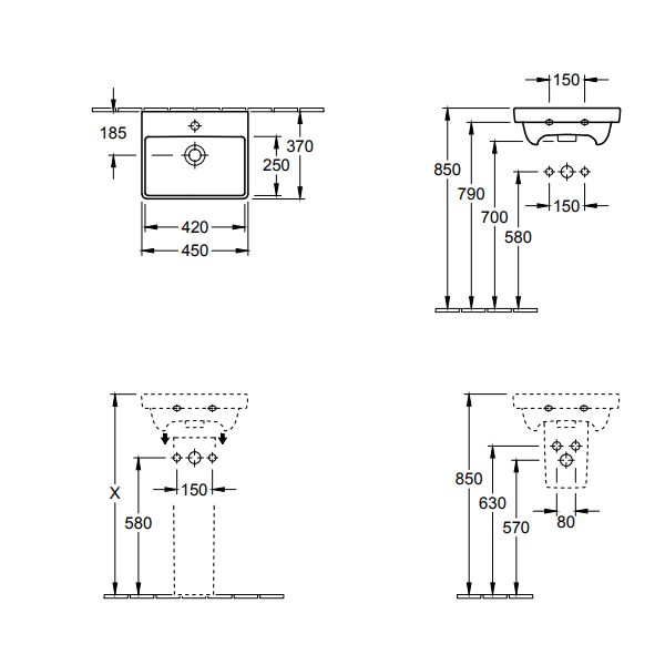 Раковина, Villeroy&Boch, Avento, ширина, мм-450, глубина, мм-370, высота, мм-150, отверстия для смесителя-одно, перелив-есть, материал-керамика, грязеотталкивающее покрытие-CeramicPlus, цвет-альпийский белый Раковина, Villeroy&Boch, Avento, шгв 450*370*150, CeramicPlus, цвет-альпийский белый