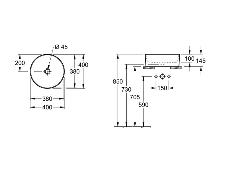 Раковина, Villeroy&Boch, Collaro, ширина, мм-400, глубина, мм-400, высота, мм-145, тип установки-на столешницу, отверстия для смесителя-отсутствуют, материал-TitanCeram, крепления в комплекте, цвет-альпийский белый, включен вырезной шаблон Раковина, Villeroy&Boch, Collaro, шгв 400*400*145, отверстия для смесителя-отсутствуют, цвет-альпийский белый