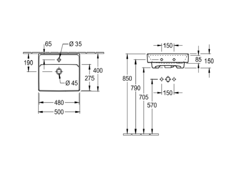 Раковина, Villeroy&Boch, Collaro, ширина, мм-500, глубина, мм-400, высота, мм-150, отверстия для смесителя-1, перелив-есть, материал-TitanCeram, цвет-альпийский белый Раковина, Villeroy&Boch, Collaro, шгв 500*400*150, отверстия для смесителя-1, цвет-альпийский белый