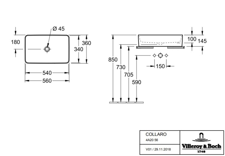 Раковина, Villeroy&Boch, Collaro, ширина, мм-560, глубина, мм-360, высота, мм-145, тип установки-накладной (настольный), отверстия для смесителя-отсутствуют, без перелива, материал-TitanCeram, вид грязеотталкивающего покрытия-CeramicPlus, крепления в комплекте, цвет-камень белый (Stone White) Раковина, Villeroy&Boch, Collaro, шгв 560*360*145, отверстия для смесителя-отсутствуют, CeramicPlus, цвет-камень белый (Stone White)