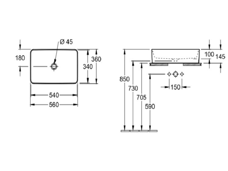 Раковина, Villeroy&Boch, Collaro, ширина, мм-560, глубина, мм-360, высота, мм-145, тип установки-на столешницу, отверстия для смесителя-отсутствуют, материал-керамика, цвет-альпийский белый, включен вырезной шаблон Раковина, Villeroy&Boch, Collaro, шгв 560*360*145, отверстия для смесителя-отсутствуют, цвет-альпийский белый