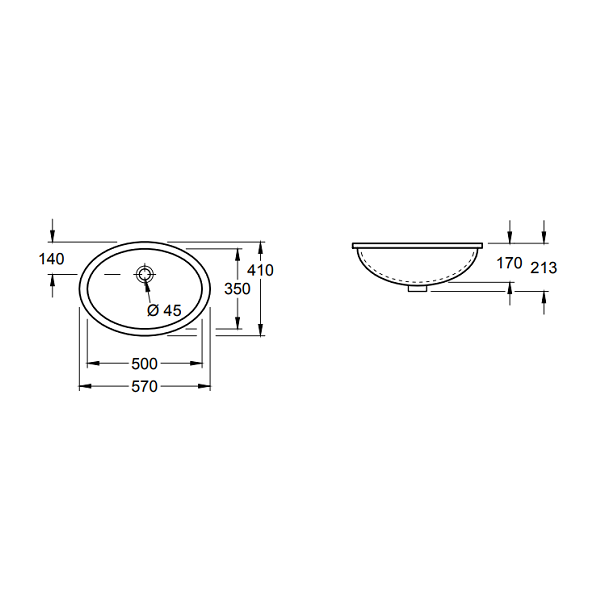 Раковина, Villeroy&Boch, Evana, ширина, мм-500, глубина, мм-350, тип установки-встраиваемый, отверстия для смесителя-отсутствуют, перелив-есть, вид грязеотталкивающего покрытия-CeramicPlus, цвет-альпийский белый Раковина, Villeroy&Boch, Evana, шг 500*350, отверстия для смесителя-отсутствуют, CeramicPlus, цвет-альпийский белый