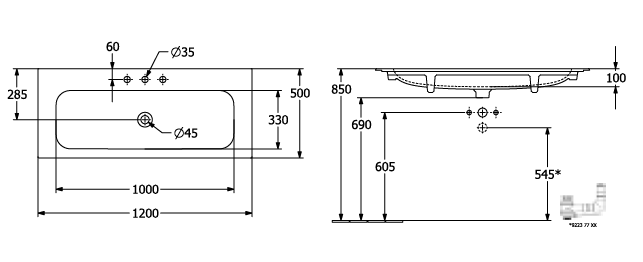 Раковина, Villeroy&Boch, Finion, ширина, мм-1200, глубина, мм-500, высота, мм-100, тип установки-встраиваемый, отверстия для смесителя-1 сквозное, 2 промаркированных, без перелива, материал-TitanCeram, вид грязеотталкивающего покрытия-CeramicPlus, цвет-Edelweiss Раковина, Villeroy&Boch, Finion, шгв 1200*500*100, отверстия для смесителя-1 сквозное, 2 промаркированных, CeramicPlus, цвет-Edelweiss