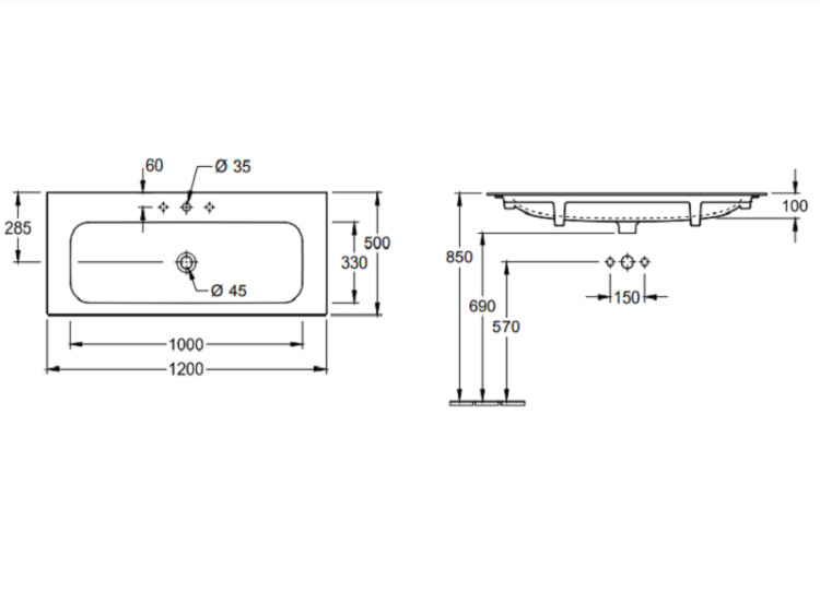 Раковина, Villeroy&Boch, Finion, ширина, мм-1200, глубина, мм-500, высота, мм-100, тип установки-на тумбу, отверстия для смесителя-отсутствуют, вид грязеотталкивающего покрытия-CeramicPlus, цвет-альпийский белый, с незапираемым клапаном, клапан с керамической крышкой Раковина, Villeroy&Boch, Finion, шгв 1200*500*100, отверстия для смесителя-отсутствуют, CeramicPlus, цвет-альпийский белый