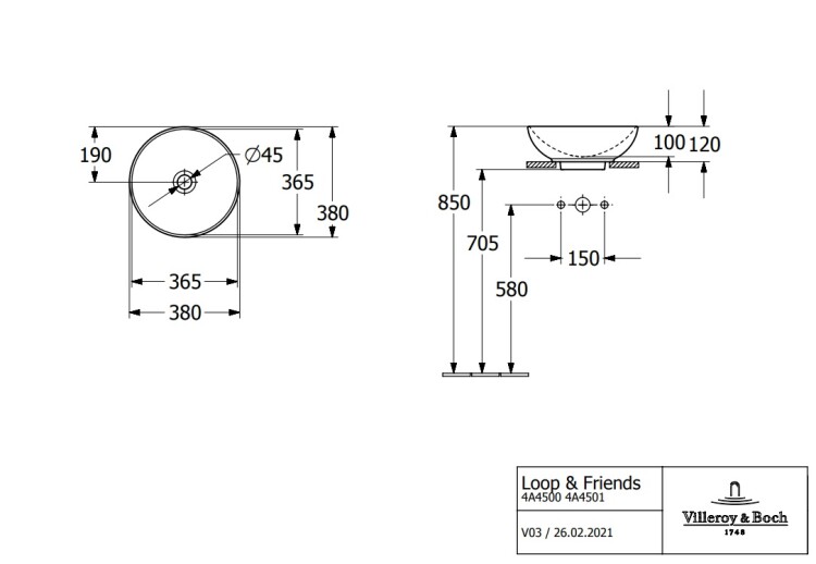 Раковина, Villeroy&Boch, Loop&Friends, ширина, мм-380, глубина, мм-380, высота, мм-150, тип установки-накладной (настольный), отверстия для смесителя-отсутствуют, с переливом, материал-TitanCeram, крепления в комплекте, цвет-альпийский белый Раковина, Villeroy&Boch, Loop&Friends, шгв 380*380*150, отверстия для смесителя-отсутствуют, цвет-альпийский белый