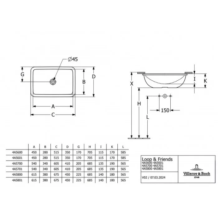 Раковина, Villeroy&Boch, Loop&Friends, ширина, мм-540, глубина, мм-340, высота, мм-190, тип установки-встраиваемый под столешницу, отверстия для смесителя-отсутствуют, с переливом, материал-TitanCeram, вид грязеотталкивающего/антибак покрытия-CeramicPlus, крепления в комплекте, цвет-Pure Black Раковина, Villeroy&Boch, Loop&Friends, шгв 540*340*190, отверстия для смесителя-отсутствуют, CeramicPlus, цвет-Pure Black