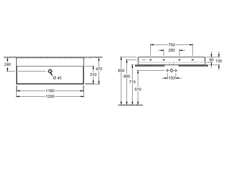 Раковина, Villeroy&Boch, Memento 2.0, ширина, мм-1200, глубина, мм-470, высота, мм-135, тип установки-настенный, отверстия для смесителя-отсутствуют, материал-TitanCeram, цвет-альпийский белый, шлифованный низ, включен вырезной шаблон Раковина, Villeroy&Boch, Memento 2.0, шгв 1200*470*135, отверстия для смесителя-отсутствуют, цвет-альпийский белый
