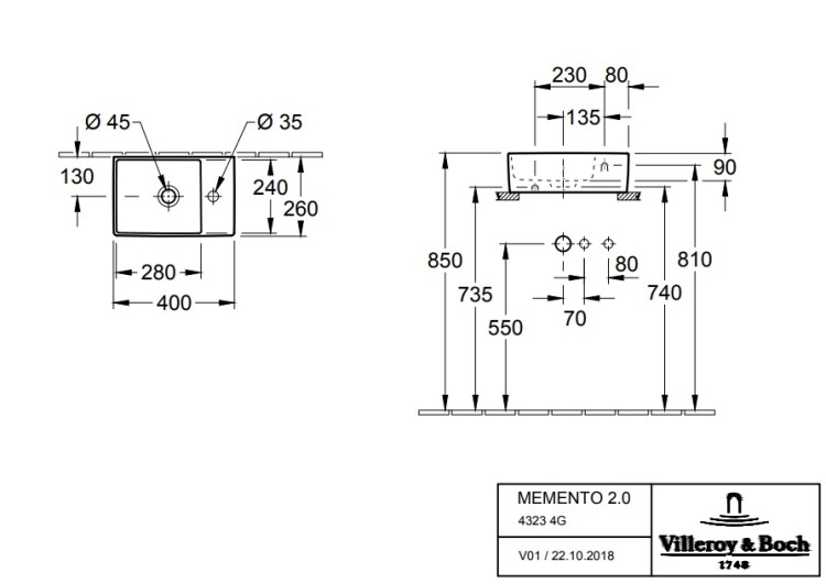 Раковина, Villeroy&Boch, Memento 2.0, ширина, мм-400, глубина, мм-260, высота, мм-90, тип установки-подвесной, отверстия для смесителя-1, без перелива, материал-TitanCeram, вид грязеотталкивающего покрытия-CeramicPlus, цвет-альпийский белый Раковина, Villeroy&Boch, Memento 2.0, шгв 400*260*90, отверстия для смесителя-1, CeramicPlus, цвет-альпийский белый