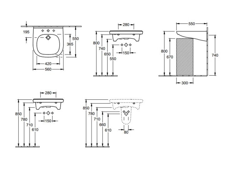 Раковина, Villeroy&Boch, O'Novo Vita, ширина, мм-560, глубина, мм-550, отверстия для смесителя-1 сквозное и 2 промаркированных, перелив-есть, цвет-альпийский белый Раковина, Villeroy&Boch, O'Novo Vita, шг 560*550, цвет-альпийский белый