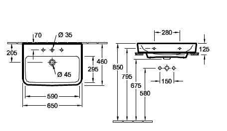 Раковина, Villeroy&Boch, O.Novo, ширина, мм-650, глубина, мм-460, высота, мм-125, тип установки-подвесной/накладной, отверстия для смесителя-отсутствуют, с переливом, материал-керамика, цвет-альпийский белый Раковина, Villeroy&Boch, O.Novo, шгв 650*460*125, отверстия для смесителя-отсутствуют, цвет-альпийский белый
