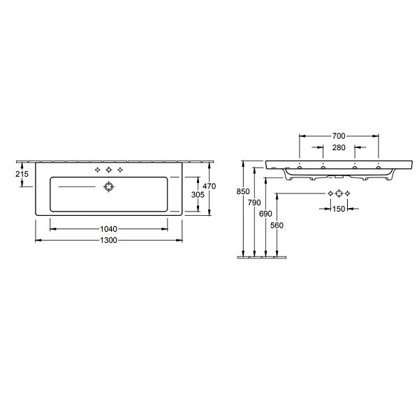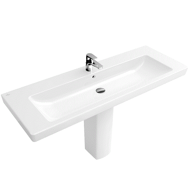 Раковина, Villeroy&Boch, Subway 2.0, ширина, мм-1300, глубина, мм-470, тип установки-на тумбу, отверстия для смесителя-1 сквозное и 2 промаркированных, перелив-есть, цвет-альпийский белый Раковина, Villeroy&Boch, Subway 2.0, шг 1300*470, цвет-альпийский белый