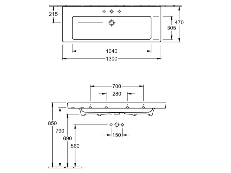 Раковина, Villeroy&Boch, Subway 2.0, ширина, мм-1300, глубина, мм-470, тип установки-на тумбу, отверстия для смесителя-1 сквозное, 2 промаркированных, перелив-есть, тип перелива-открытый, материал-санфарфор, вид грязеотталкивающего покрытия-CeramicPlus, цвет-альпийский белый Раковина, Villeroy&Boch, Subway 2.0, шг 1300*470, отверстия для смесителя-1 сквозное, 2 промаркированных, CeramicPlus, цвет-альпийский белый