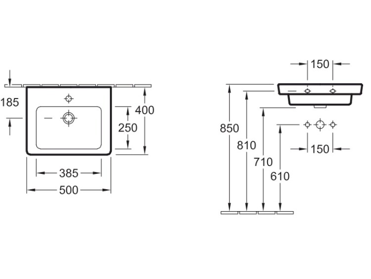 Раковина, Villeroy&Boch, Subway 2.0, ширина, мм-500, глубина, мм-400, тип установки-настенный, отверстия для смесителя-1, перелив-есть, тип перелива-открытый, материал-санфарфор, цвет-альпийский белый, шлифованный низ, включен вырезной шаблон Раковина, Villeroy&Boch, Subway 2.0, шг 500*400, отверстия для смесителя-1, цвет-альпийский белый