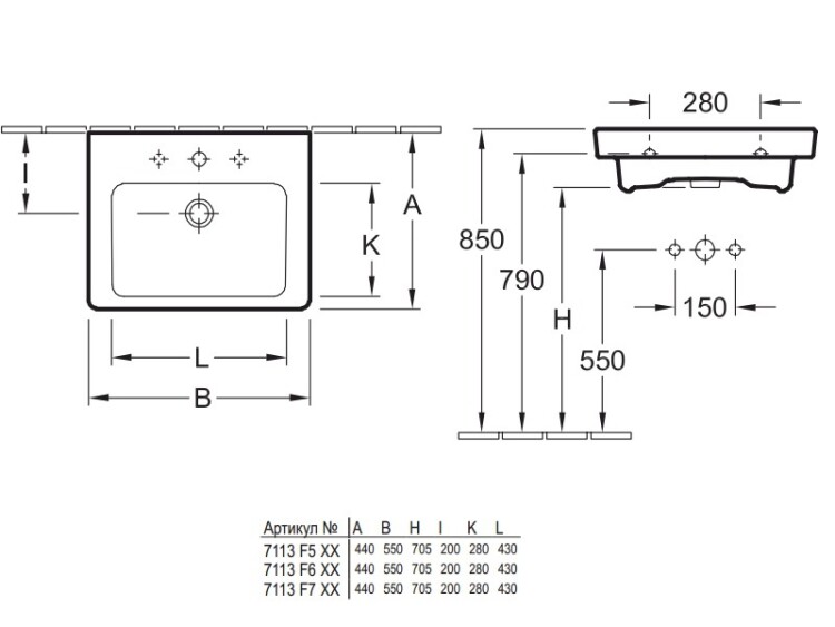 | Отверстия под смеситель | 1 сквозное, 2 промаркированных |