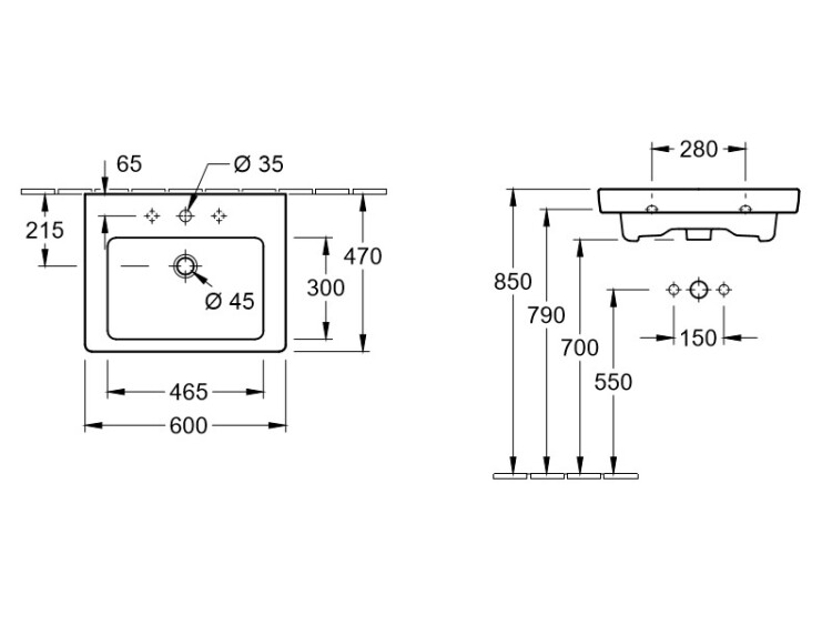 Раковина, Villeroy&Boch, Subway 2.0, ширина, мм-600, глубина, мм-470, тип установки-настенный, отверстия для смесителя-1 сквозное, 2 промаркированных, перелив-есть, тип перелива-открытый, материал-санфарфор, вид грязеотталкивающего покрытия-CeramicPlus, цвет-альпийский белый Раковина, Villeroy&Boch, Subway 2.0, шг 600*470, отверстия для смесителя-1 сквозное, 2 промаркированных, CeramicPlus, цвет-альпийский белый