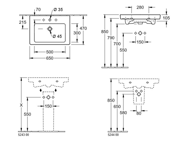 Раковина, Villeroy&Boch, Subway 2.0, ширина, мм-650, глубина, мм-470, отверстия для смесителя-1 сквозное, 2 промаркированных, перелив-есть, тип перелива-открытый, материал-санфарфор, вид грязеотталкивающего покрытия-CeramicPlus, цвет-альпийский белый Раковина, Villeroy&Boch, Subway 2.0, шг 650*470, отверстия для смесителя-1 сквозное, 2 промаркированных, CeramicPlus, цвет-альпийский белый