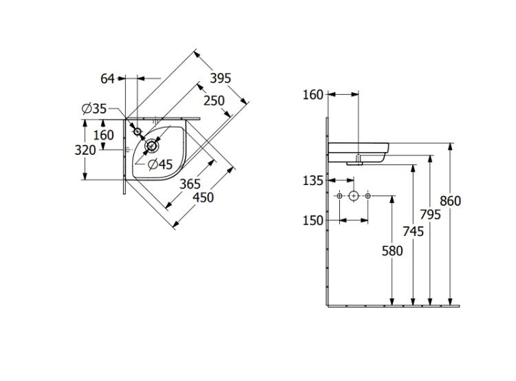 Раковина, Villeroy&Boch, Subway 3.0, ширина, мм-320, глубина, мм-320, высота, мм-145, тип установки-подвесной угловой, отверстия для смесителя-1, перелив-отсутствует, материал-керамика, цвет-альпийский белый Раковина, Villeroy&Boch, Subway 3.0, шгв 320*320*145, отверстия для смесителя-1, цвет-альпийский белый