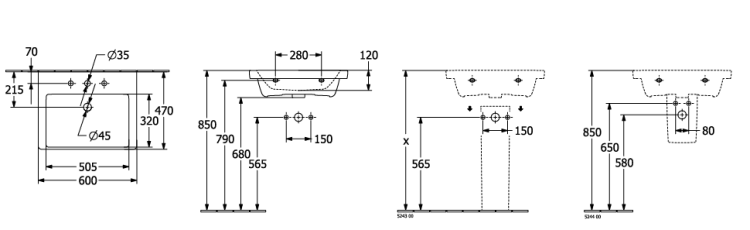 Раковина, Villeroy&Boch, Subway 3.0, ширина, мм-600, глубина, мм-470, высота, мм-120, тип установки-накладной, отверстия для смесителя-1 сквозное, 2 промаркированных, без перелива, материал-TitanCeram, цвет-альпийский белый Раковина, Villeroy&Boch, Subway 3.0, шгв 600*470*120, отверстия для смесителя-1 сквозное, 2 промаркированных, цвет-альпийский белый