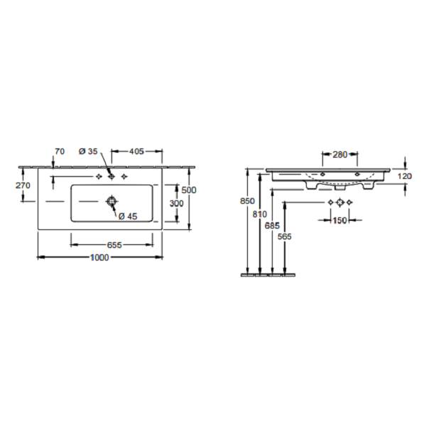 Раковина, Villeroy&Boch, Venticello, ширина, мм-1000, глубина, мм-500, тип установки-на тумбу, отверстия для смесителя-отсутствуют, перелив-есть, декор-без декора, материал-керамика, цвет-альпийский белый Раковина, Villeroy&Boch, Venticello, шг 1000*500, цвет-альпийский белый