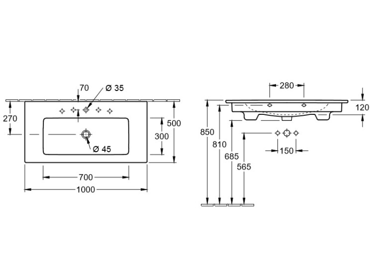 Раковина, Villeroy&Boch, Venticello, ширина, мм-1000, глубина, мм-500, тип установки-на тумбу, отверстия для смесителя-1 сквозное, 2 промаркированных, перелив-есть, тип перелива-открытый, материал-санфарфор, вид грязеотталкивающего покрытия-CeramicPlus, цвет-альпийский белый Раковина, Villeroy&Boch, Venticello, шг 1000*500, отверстия для смесителя-1 сквозное, 2 промаркированных, CeramicPlus, цвет-альпийский белый