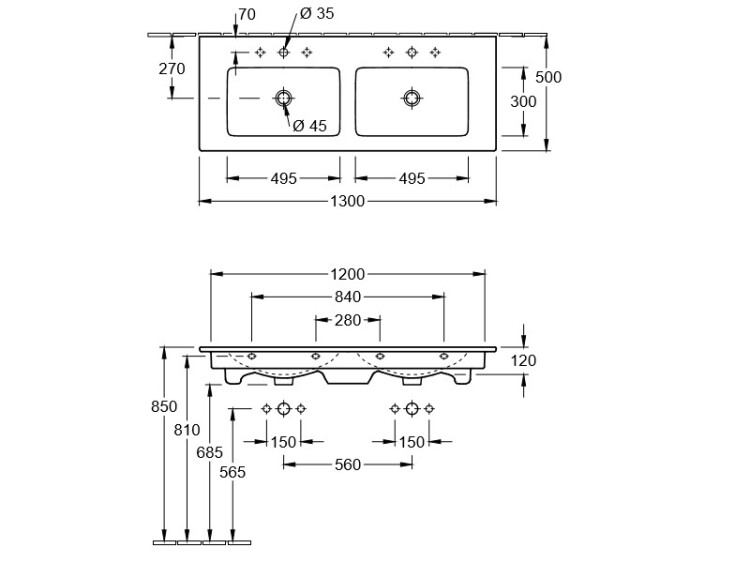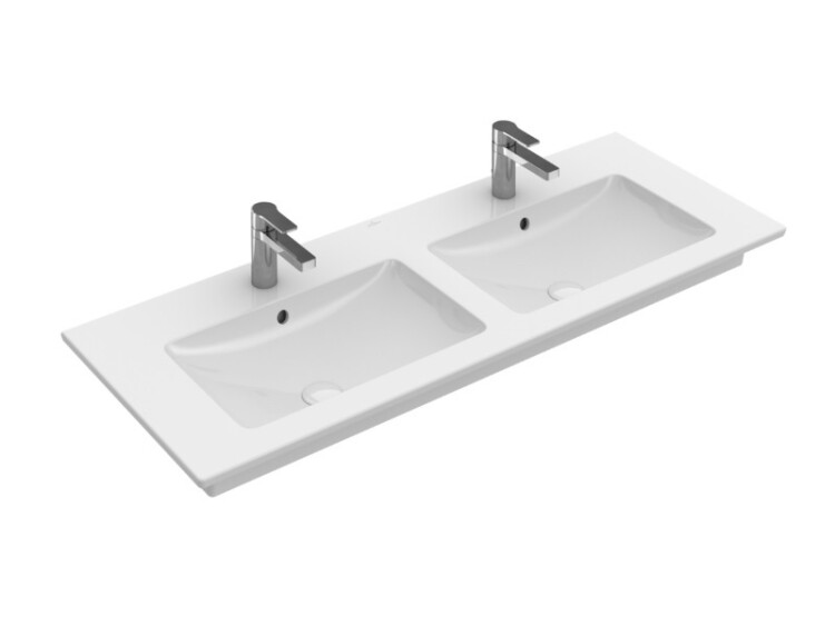 Раковина, Villeroy&Boch, Venticello, двойная, ширина, мм-1300, глубина, мм-500, тип установки-на тумбу, отверстия для смесителя-отсутствуют, перелив-есть, материал-санфарфор, вид грязеотталкивающего покрытия-CeramicPlus, цвет-альпийский белый Раковина, Villeroy&Boch, Venticello, шг 1300*500, отверстия для смесителя-отсутствуют, CeramicPlus, цвет-альпийский белый