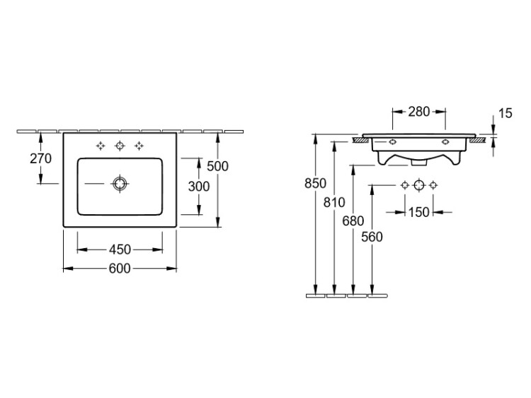 Раковина, Villeroy&Boch, Venticello, ширина, мм-600, глубина, мм-500, тип установки-настенный, отверстия для смесителя-1, перелив-есть, материал-санфарфор, вид грязеотталкивающего покрытия-CeramicPlus, цвет-альпийский белый, прямоугольгая, шлифованный низ Раковина, Villeroy&Boch, Venticello, шг 600*500, отверстия для смесителя-1, CeramicPlus, цвет-альпийский белый